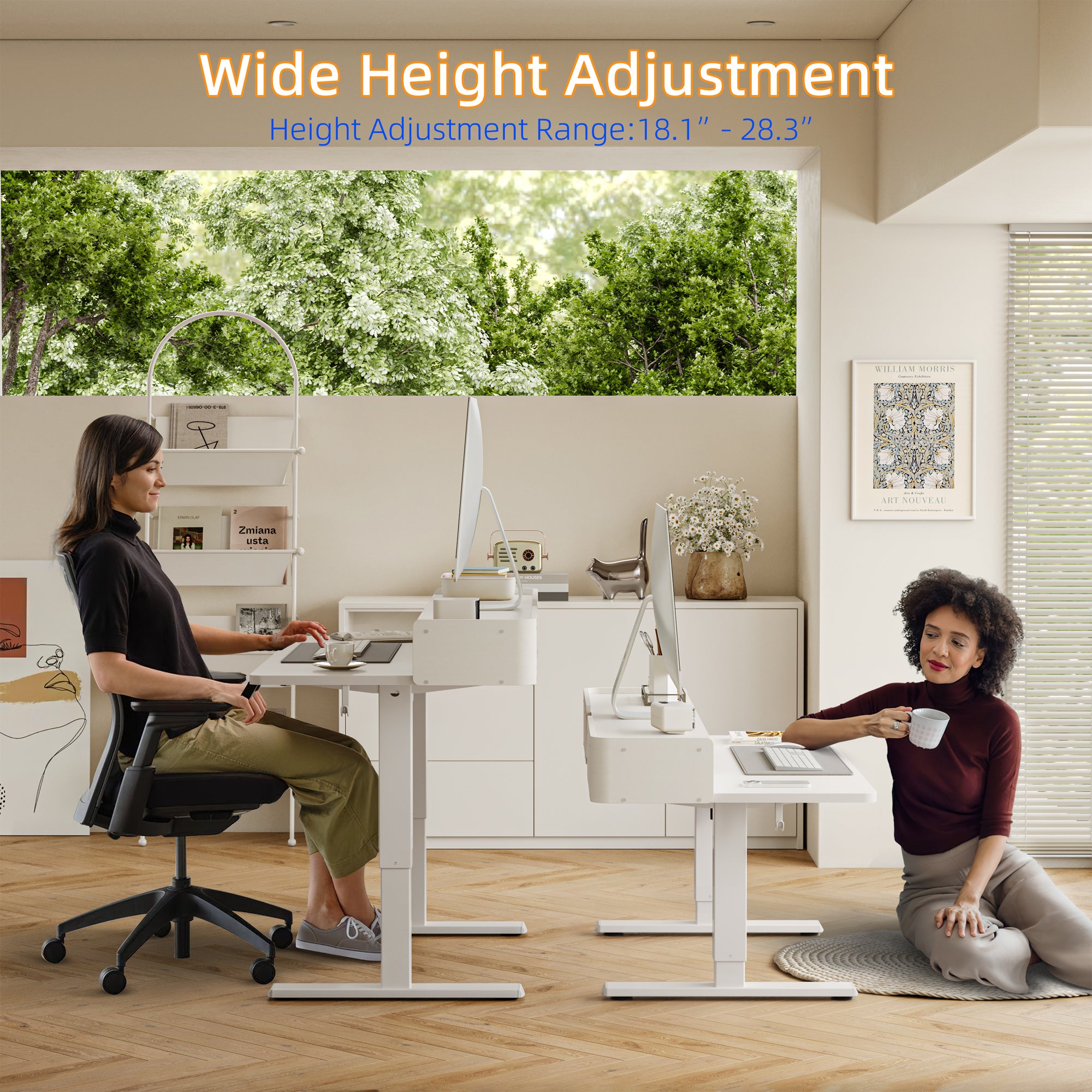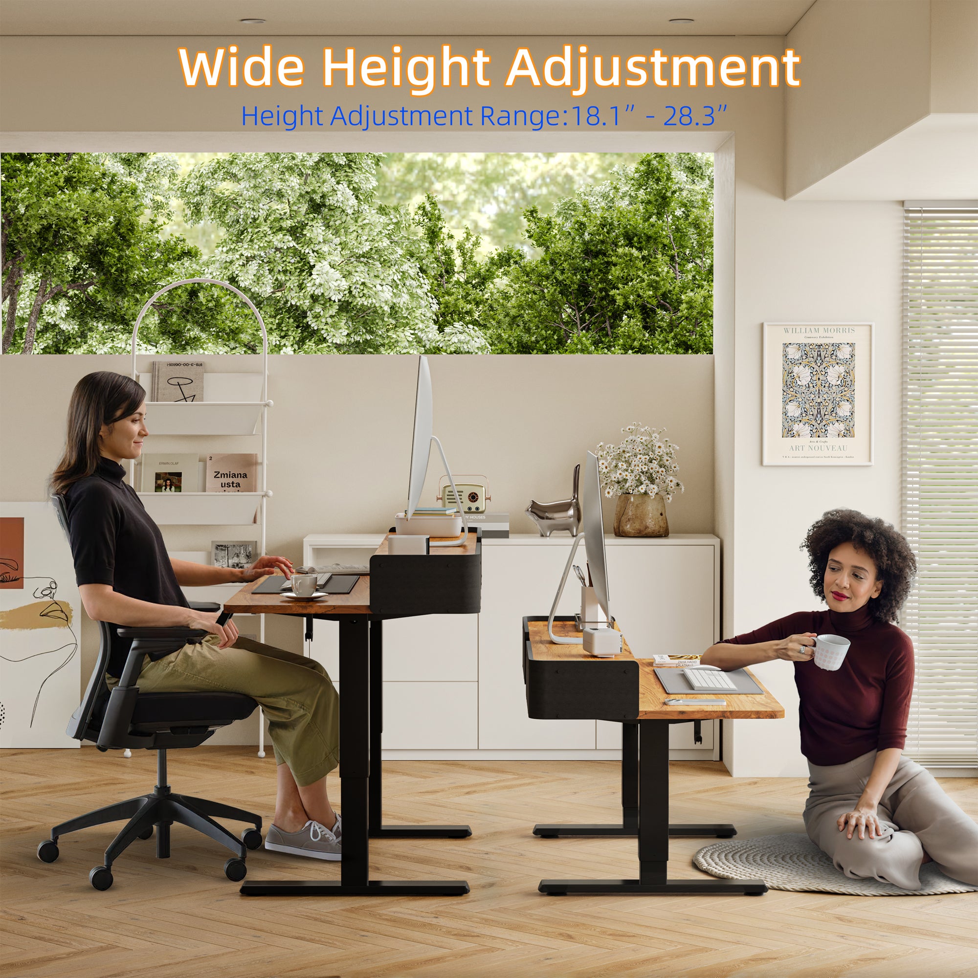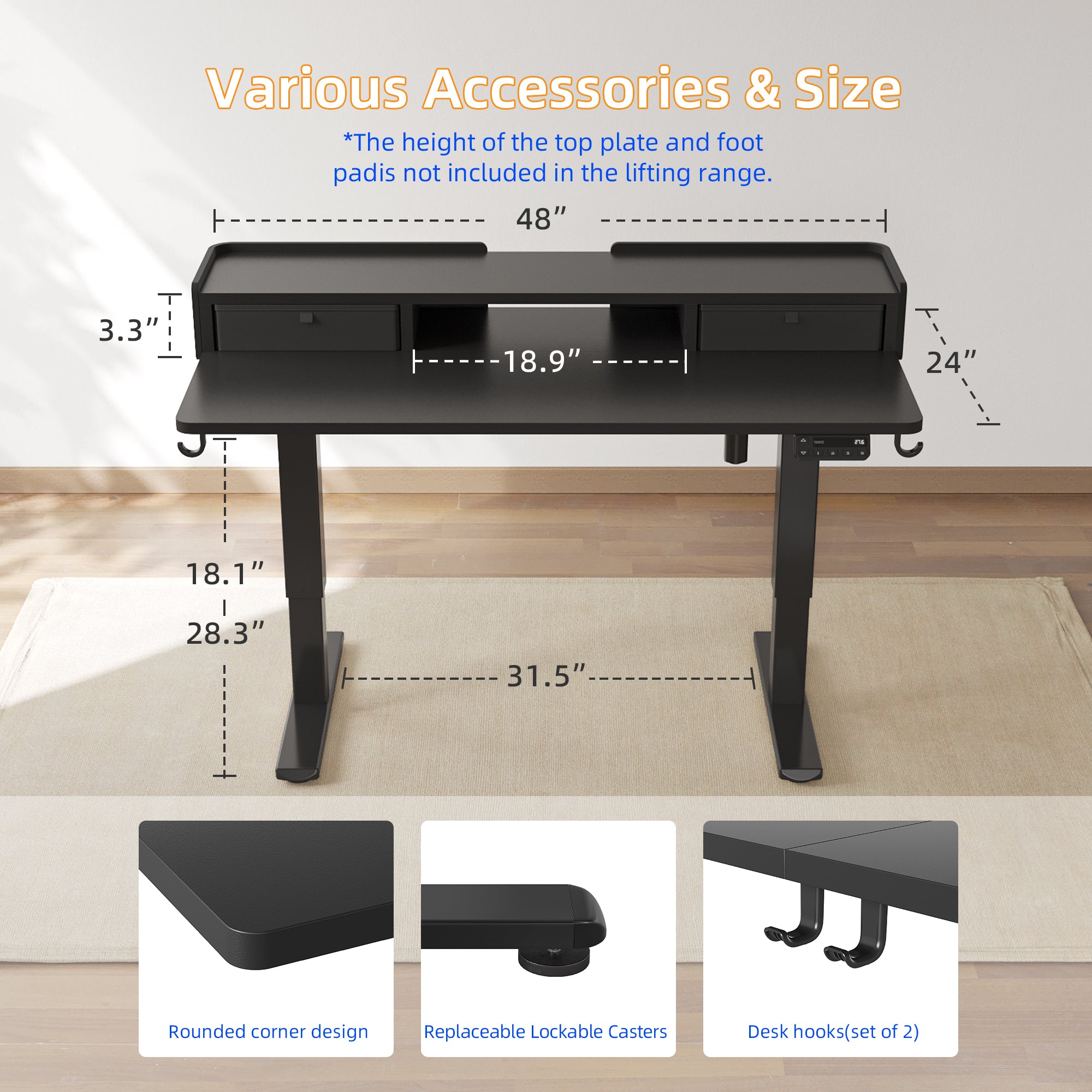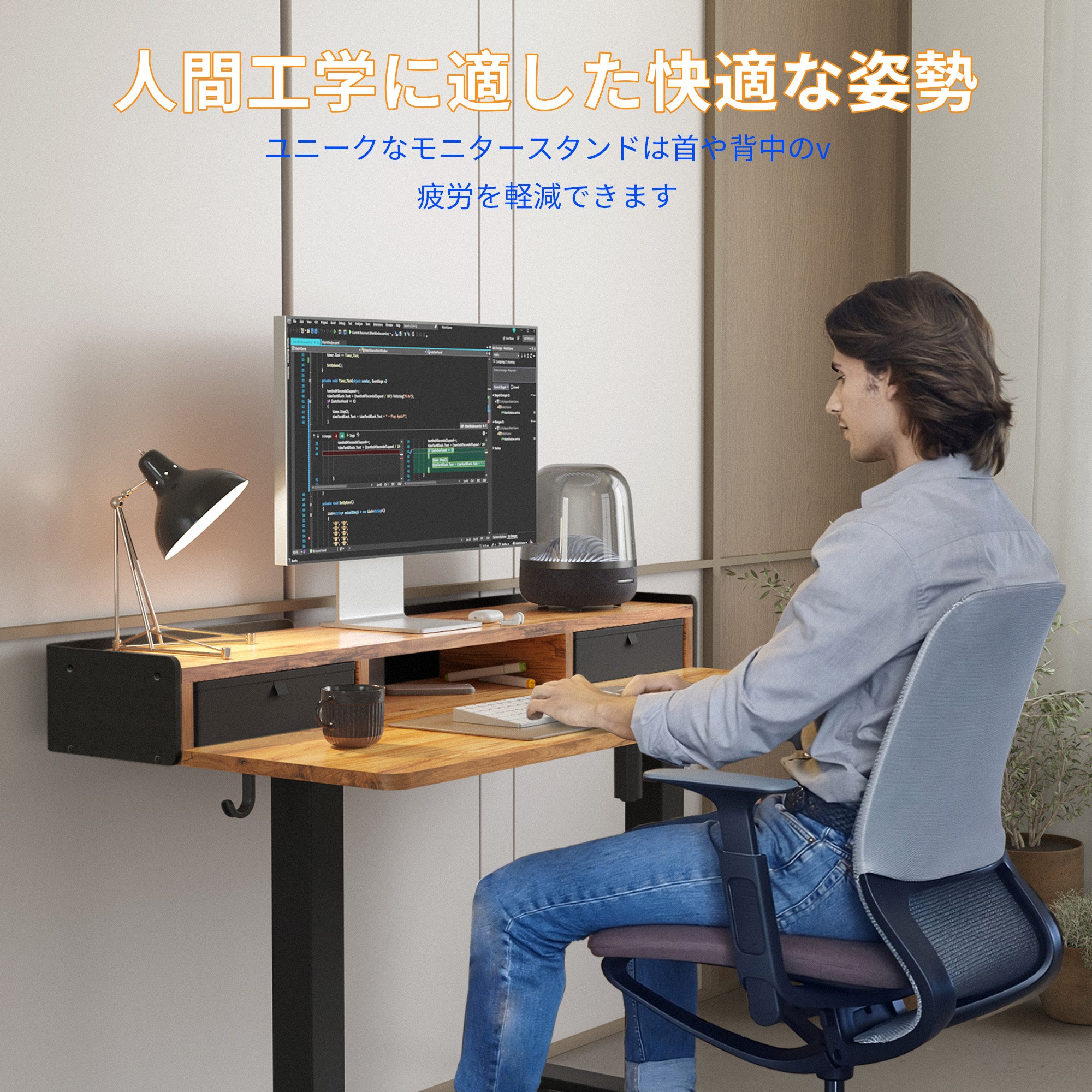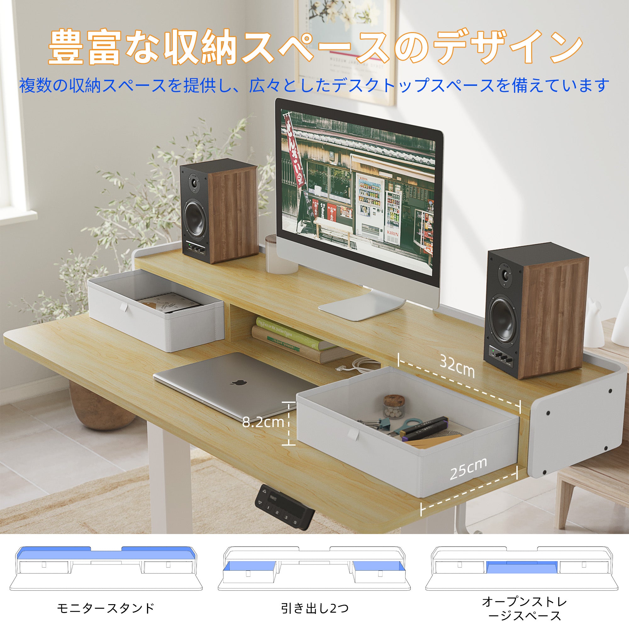 YIHAYO electric sit-stand desk has a monitor stand for your monitor and other devices, allowing you to keep your eyes parallel to the screen, helping to reduce neck and back pressure. Two fabric drawers provide ample storage space for your belongings, allowing you to store files, books, cables, etc., helping to keep your desk tidy and organized. This sit-stand desk is also equipped with a headphone hook and desktop cable storage hole to create an organized workspace.