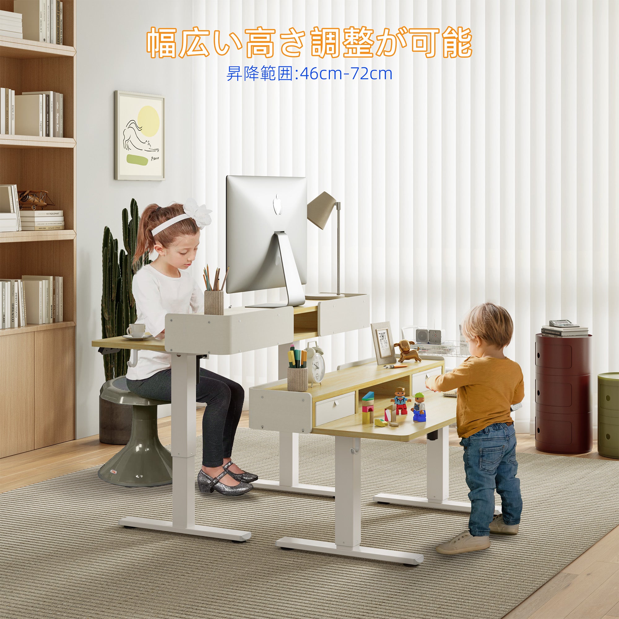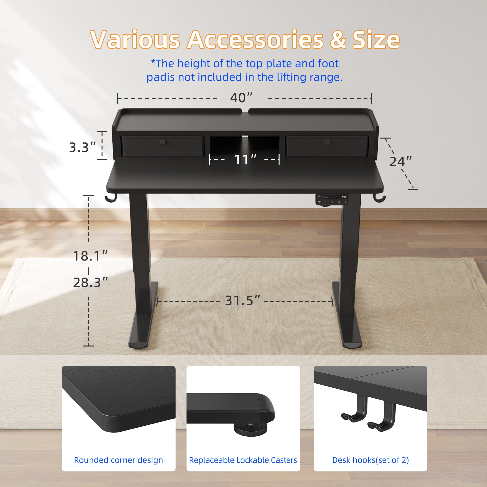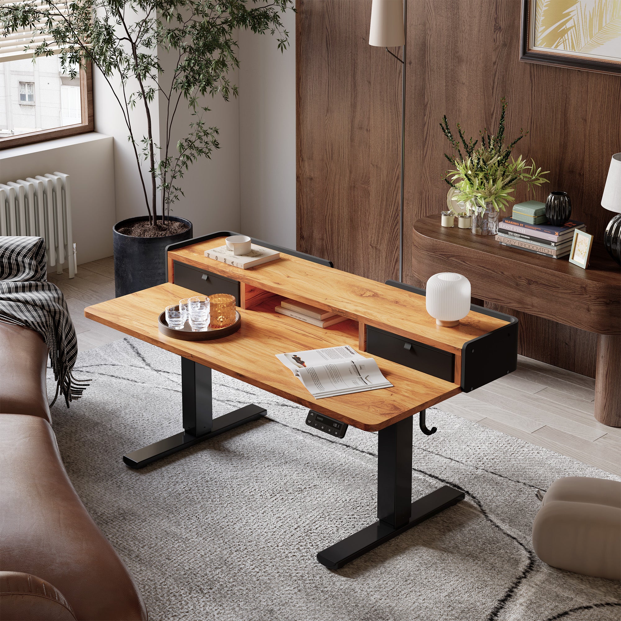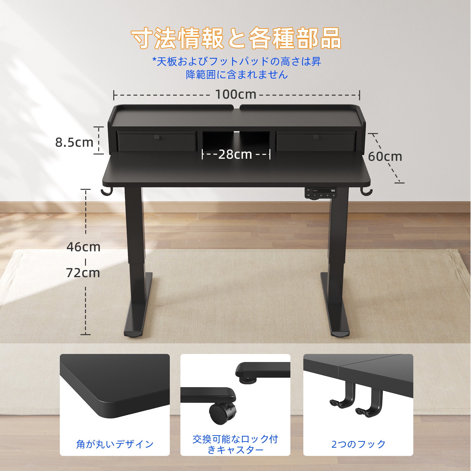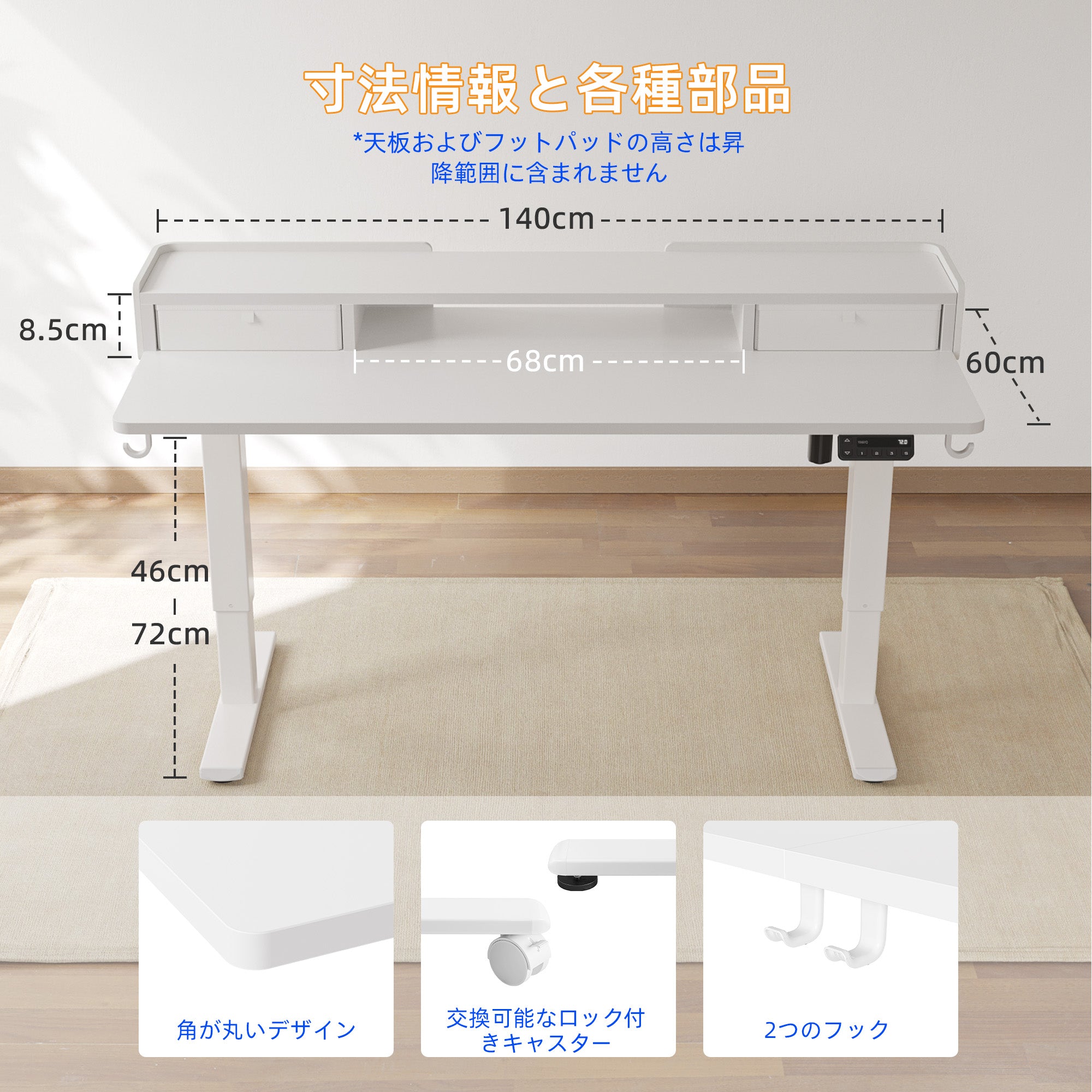 YIHAYO electric sit-stand desk has a monitor stand for your monitor and other devices, allowing you to keep your eyes parallel to the screen, helping to reduce neck and back pressure. Two fabric drawers provide ample storage space for your belongings, allowing you to store files, books, cables, etc., helping to keep your desk tidy and organized. This sit-stand desk is also equipped with a headphone hook and desktop cable storage hole to create an organized workspace.